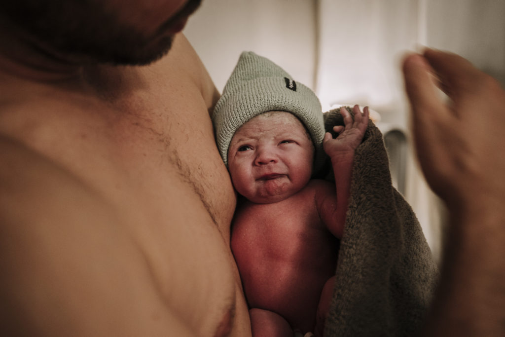 I pulled him through my legs and onto my chest just a few minutes later. The room was filled with cheers. My husband and I laid back in our bed, admiring our newest son.